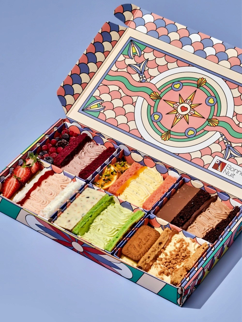 Orman meyveli, çilekli, portakallı, lotuslu, Antep fıstıklı ve sütlü Belçika çikolatalı 6 çeşit pasta