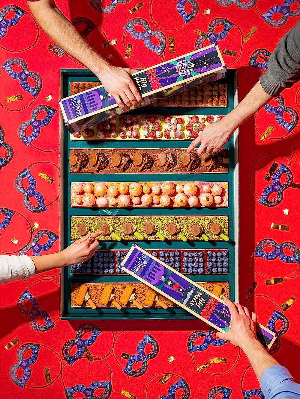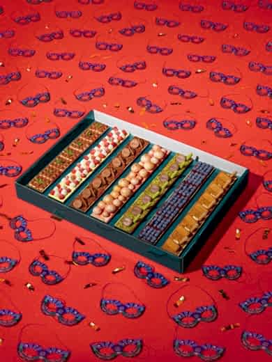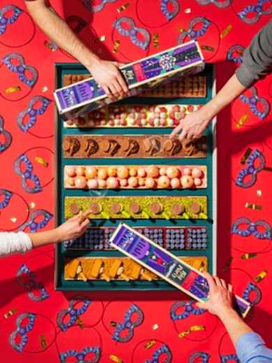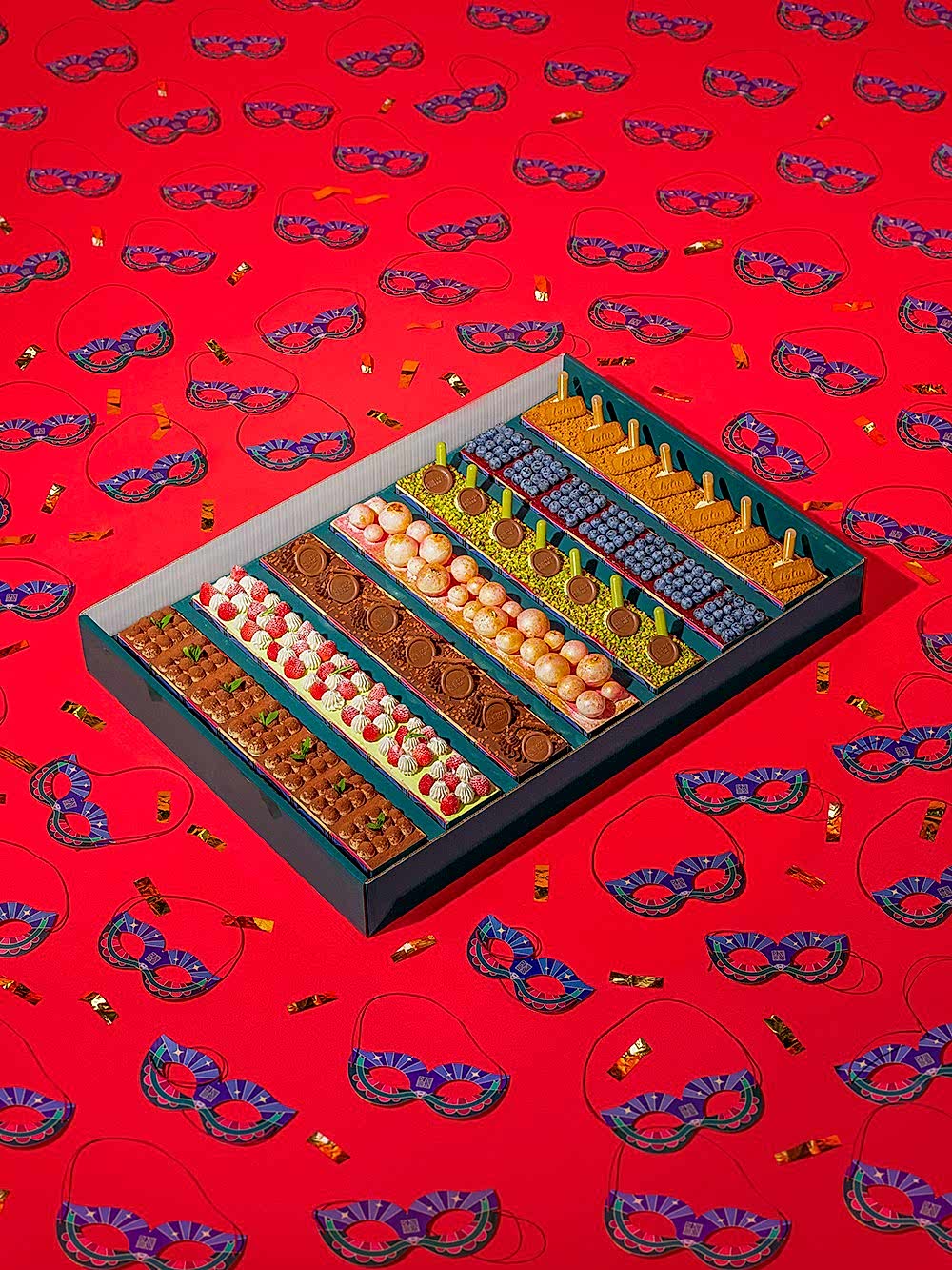 Çikolatalı Pasta : Kakaolu ıslak kek, kakaolu fındık pralin, bitter çikolatalı ganaj, bitter çikolatalı Bavyera krema,