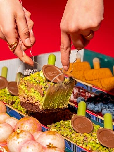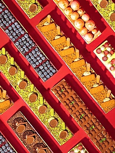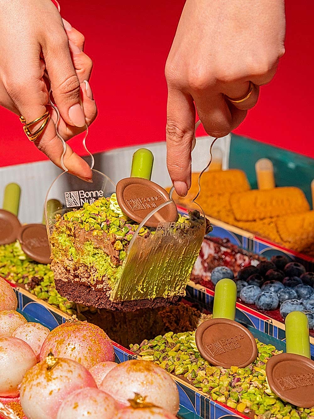 Fıstıklı Pasta : Brownie, Antep fıstık ezmesi, çıtır kadayıf, bittter çikolatalı ganaj, sütlü çikolatalı Bavyera kreması, antep fıstık dolgusu ve antep fıstığı