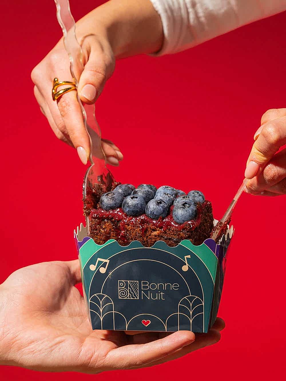 Orman Meyveli Pasta : Kakaolu kek, bitter çikolatalı ganaj, orman meyveli krema, yaban mersini dolgusu ve yaban mersini meyvesi