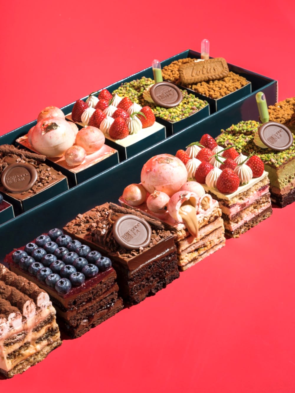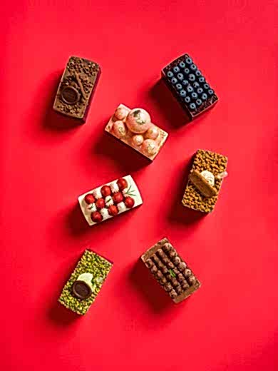 Fıstıklı Pasta : Brownie, Antep fıstık ezmesi, çıtır kadayıf, bittter çikolatalı ganaj, sütlü çikolatalı Bavyera kreması, antep fıstık dolgusu ve antep fıstığı