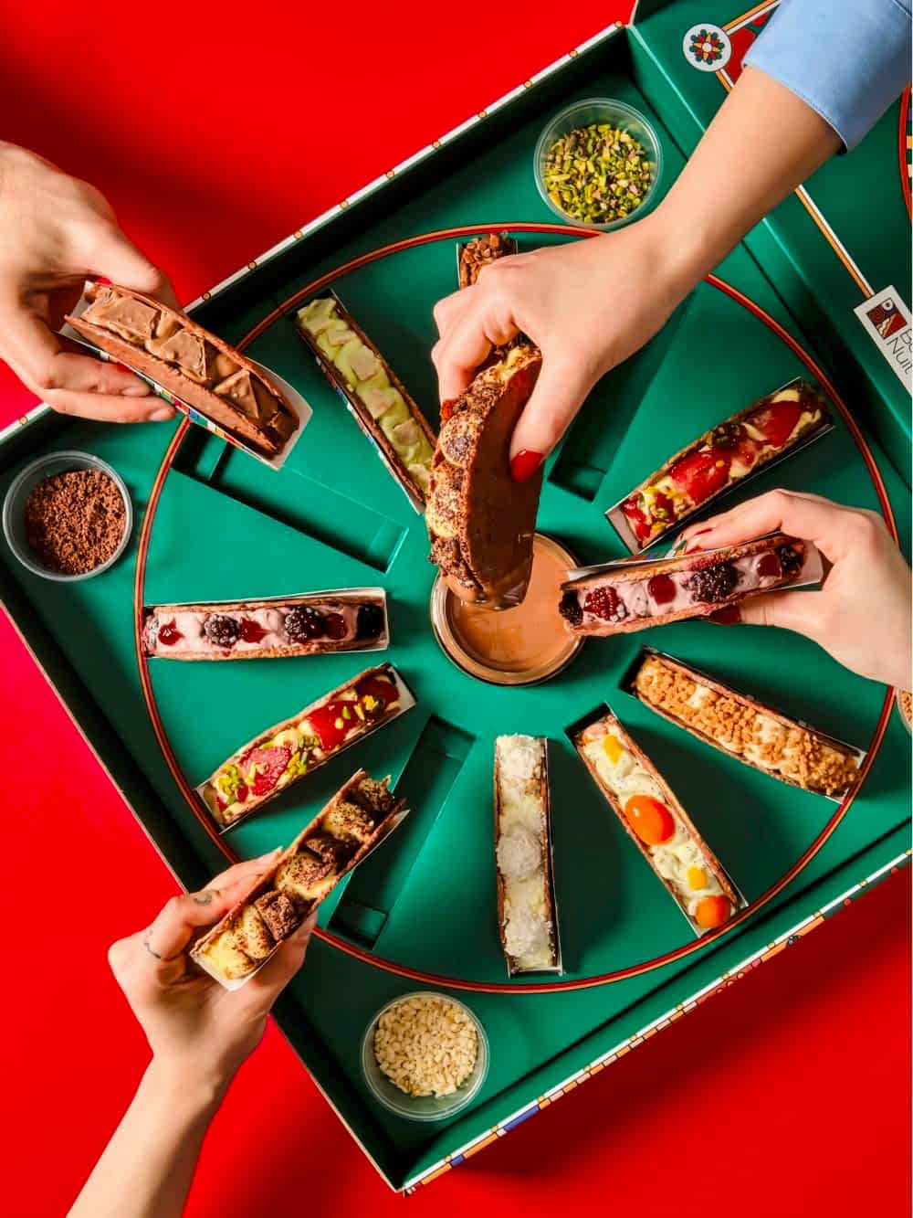 Waffle parçaları arasında: Pastacı kreması, özel dolgular ve kek parçaları