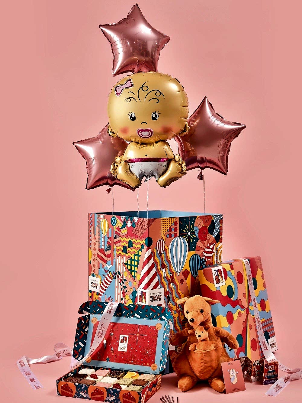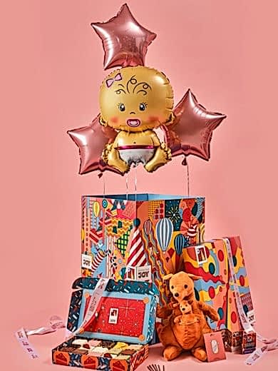 3 adet pembe yıldız, 1 adet bebek uçan balon